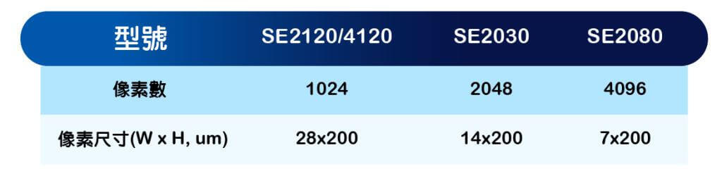 SmartEngine智能引擎12號採用濱松1024pixels CMOS高感度感測器,其Pixel Size是本公司主力機種SmartEngine智能引擎3號(SE2030、SE4030)的兩倍,大幅提高了感光度。同時由於Pixel數較SE2030少了一半,其掃描速度提升了1倍,適合應用在需要光源強度低或快速量測的需求。又SE4120為智能引擎12號FX2版本機型,此機型強化了USB傳輸速度,且功耗較低,非常適合超高速偵測與數據傳輸的量測需求。